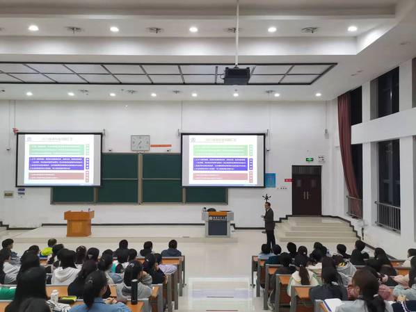 11月5日晚,我院在东区综合楼127教室组织开展了“我与名师面对面”活动,邀请博士生导师杨林教授为2021级本科生开展专业导航专题讲座。学院有关领导、专兼职辅导员和2021级全体本科生参加了活动,讲座由院党委副书记李朝阳主持。