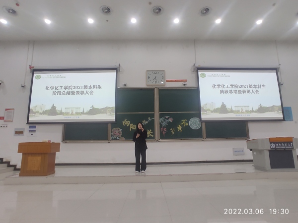3月6日晚,我院2021级本科生在东区综合楼127召开“筑梦新学期 一起向未来”主题班会暨年级阶段表彰大会,专兼职辅导员及2021级全体本科生共同参与,会议由年级团支书李梓毓主持。
