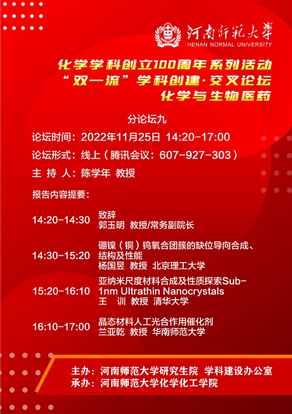 伟德官网下载苹果版化学学科“双一流”创建交叉融合创新论坛暨化学学科创立100周年系列学术交流活动(九)
