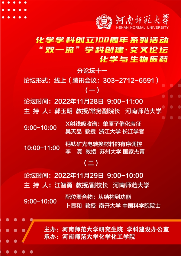 伟德官网下载苹果版化学学科“双一流”创建交叉融合创新论坛暨化学学科创立100周年系列学术交流活动(十一)