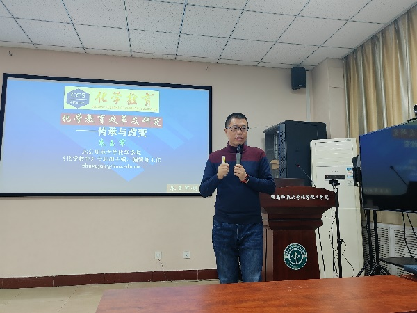 为提高学院教育硕士学术科研能力,2023年11月09日,北京师范大学教授、核心期刊《化学教育》专职副主编、编辑部副主任朱玉军博士应邀于化学北楼N102会议室为学院师生做“化学教育改革及研究——传承与改变”主题学术报告。本次报告会由刘玉荣教授主持,王菲菲副教授、侯燕副教授、河师大附属中学李现山老师以及部分2022级、2021级研究生等参与了报告会。