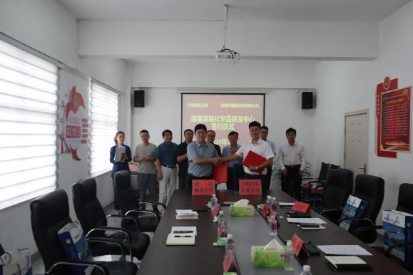 台前县县委常委、政法委书记张鲁海介绍了台前县产业情况,河南中硼新材料有限公司总经理王乐介绍了企业情况和企业需求,科技处副处长杨献光介绍了我校的“产学研”合作情况,李志勇与王乐就共建校企研发中心签约。