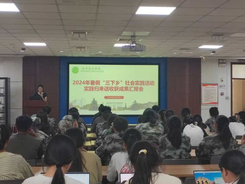 为提高学生的社会实践能力,深化育人成果,9月18日中午,我院在化学北楼五楼会议室召开了2024年暑假“三下乡”社会实践活动实践归来话收获成果汇报会。化学化工学院团委书记曹锟、创新创业工作秘书张艳、各实践团队代表及百余名学生共同参会。