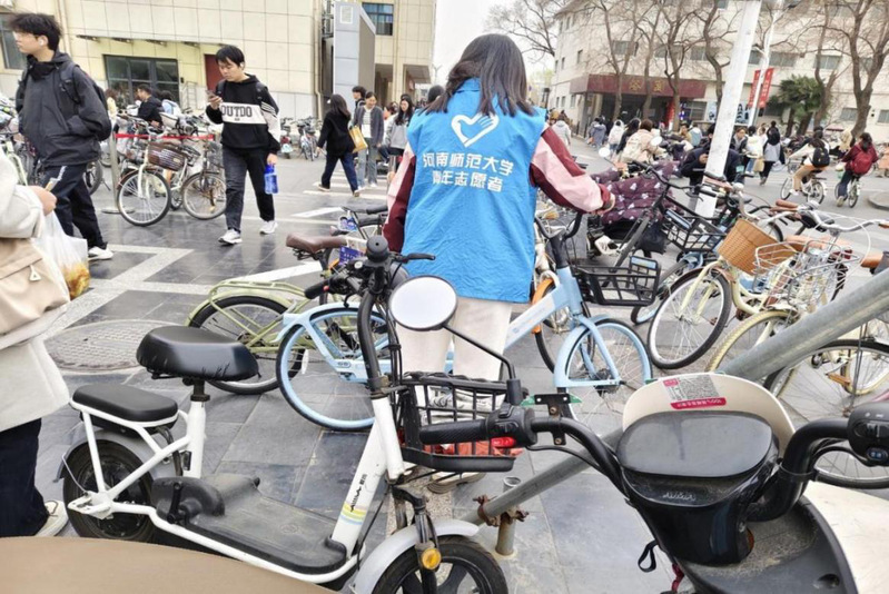 活动期间,学院每日派出4名志愿者,在浴园生活区和致远楼与学苑餐厅交汇处等人流、车流量密集的十字路口处开展文明劝导工作。志愿者分为午间和傍晚两个时段轮岗值守,重点对非机动车乱停乱放、逆行占道等不文明行为进行耐心劝导,同时协助师生规范摆放共享单车、指引车辆有序通行,用实际行动维护校园交通秩序。为期12天的活动中,累计48名志愿者参与服务,劝导不规范行为200余次,整理非机动车500余辆。活动不仅改善了校园重点区域的交通秩序,更通过持续引导增强了师生的文明意识。许多师生反馈,志愿者们的微笑劝导让人倍感温暖,今后会更加注意出行细节,共同维护校园文明形象。2023级志愿者孙心玲在活动结束后感慨道,“雷锋精神离我们并不遥远,它就在每一次耐心劝导、每一句善意提醒里。未来我会继续参与志愿服务,让更多人感受到温暖与善意。”