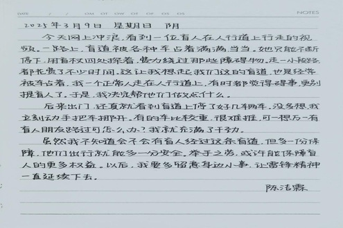 本次“雷锋周记我来写”打卡活动以沉浸式实践厚植青年学子家国情怀。活动既是对雷锋精神的时代化诠释,更在思想引领与实践养成的双向互动中,推动志愿服务意识深植心田。