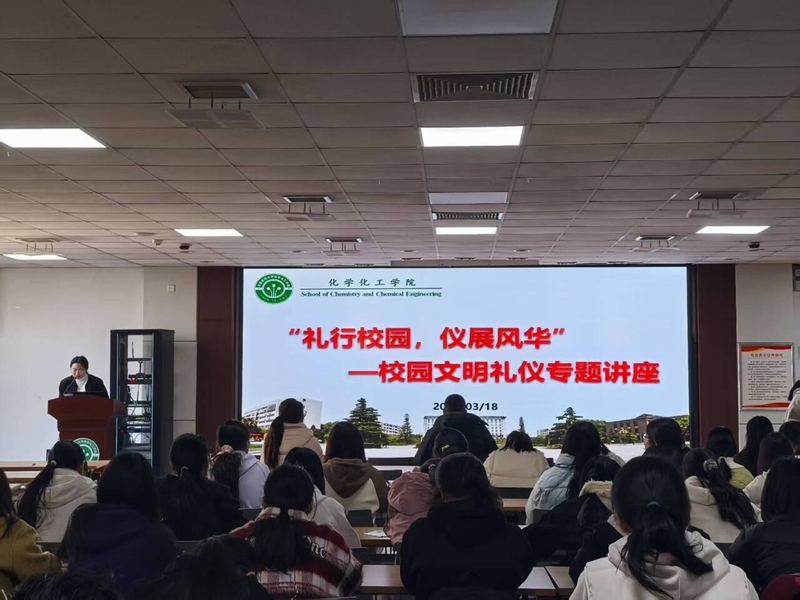 为提升学生的文明礼仪素养,营造文明和谐的校园氛围,2025年3月18日中午,我院在化北五楼会议室举办了“礼行校园,仪展风华”校园文明礼仪专题讲座。本次活动由学院第二课堂管理中心、西八“一站式”学生社区主办,特邀2023级辅导员邢凯老师担任主讲,与2023级、2024级本科生共同参与。
