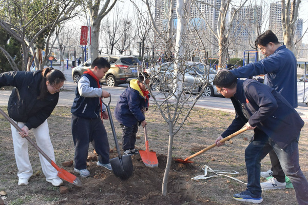 在活动现场,校友和师生们相互配合,挖坑、栽植、回填、培土、踩实、浇水,彼此合作完成了树苗的栽种,每道工序都一丝不苟、井然有序。植树过程中,还吸引到两名小学生主动加入,他们挥汗如雨,用汗水与欢笑交织成春日奋进的画卷。当海棠花树落地生根时,校友们动情地说:“这些海棠将在代代化院人的接力培育下,以朵朵繁花凝望守护着每一位化院学子,见证他们在这片匠心沃土中抽枝展叶,终成栋梁。”