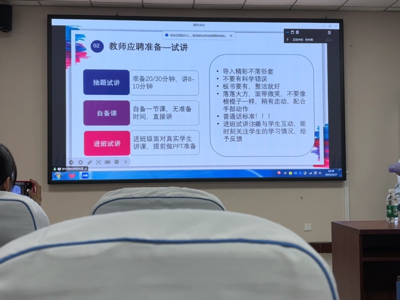 张钊源现就职于武汉市第十二中学。她围绕求职经历和教师岗位应聘准备展开讲解,指出教师应聘备考可从讲课、说课、结构化面试、答辩、教育基础知识以及高考学科试题等六个方面入手。在试讲环节,应做到导入新颖、板书规整、教态自然,并积极与学生互动;针对结构化面试,建议同学们关注教育热点,借助网络平台收集资料,拓宽备考视野。