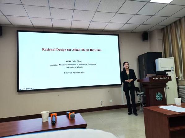 2025年4月14日,应我学院邀请,加拿大阿尔伯塔大学Li Ge教授为我院师生作题为“Rational design for alkali metal battery”的学术报告,报告会在化学北楼N102报告厅举行,学院相关师生参加了报告会议,会议由付小刚教授主持。