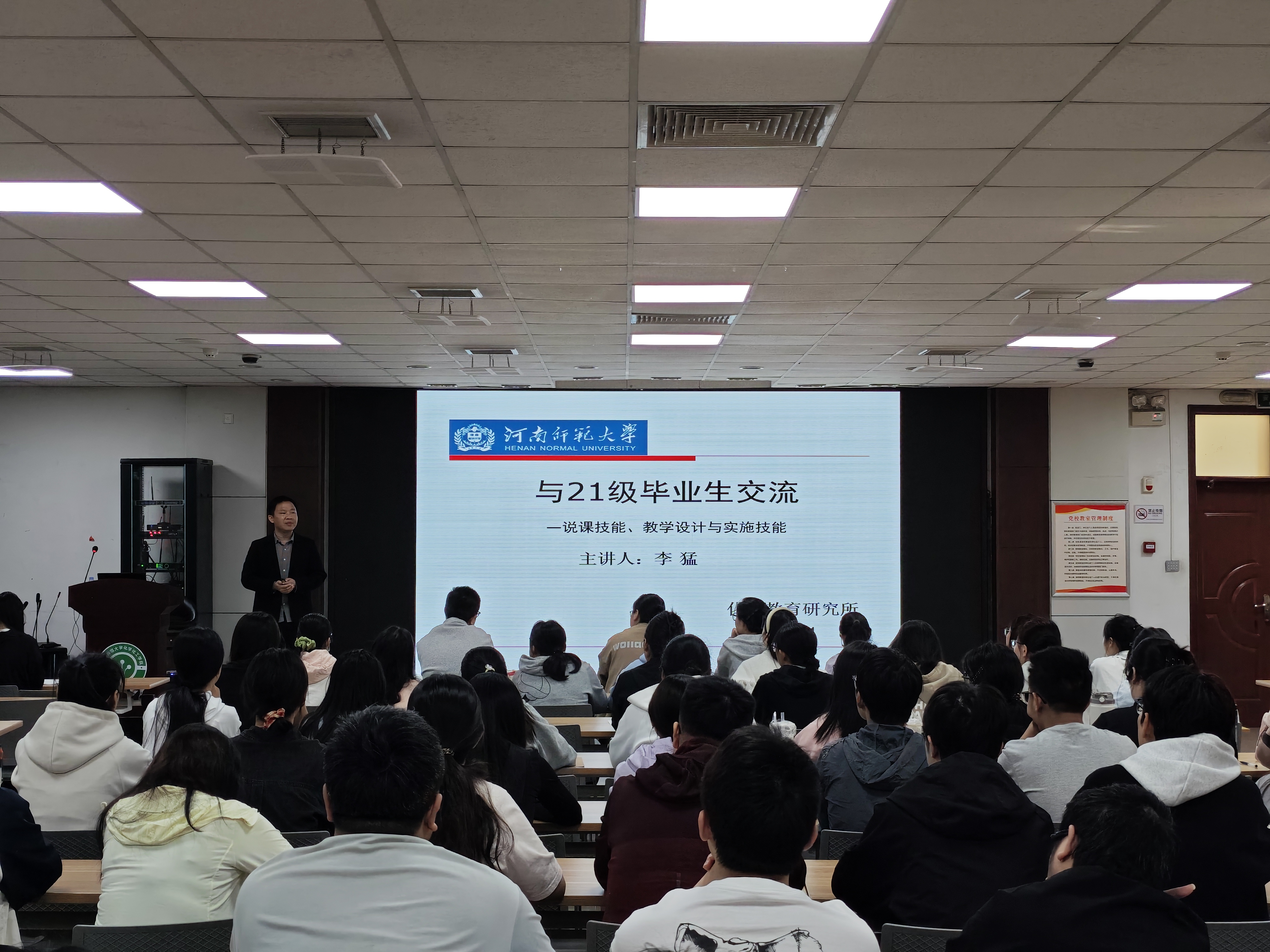 会上,李猛向同学们介绍了说课思路、讲课技巧、备考重点等内容,从说课的起源和含义进行引入,详细阐释上课与说课的不同、说课稿件的基本构成,重点强调应注意保持说课稿件环节的完整性,要理解说课不仅解决教什么、怎么教,还要讲述为什么这样教的道理。现场气氛轻松活跃,传道授业的氛围浓郁,同学们全程专注听讲,踊跃提问,积极交流,汲取经验。最后,李猛针对备考面试中同学们常见的疑难困惑给出个人的具体建议,同时指出保持良好面试心态的重要性,赢得同学们的阵阵掌声。