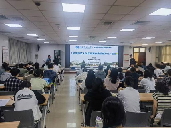 为进一步强化实验室安全管理,4月25日上午,我院在化北五楼会议室开展实验室安全专题培训会。副院长党治国主持会议,国有资产与实验室管理处副处长张鑫作专题报告,学院百余名师生代表参加活动。