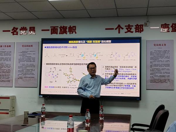5月18日,应我院邀请,中国科学技术大学龚流柱教授、复旦大学王洋教授为我院师生分别作了题为“基于原子转移自由基串联反应的不对称烷烃转化”“调控细胞周期的新型抗肿瘤药物研究”的学术报告,报告在化学北楼S-601会议室进行。学院相关老师、研究生、本科生等参加了报告会。报告由谢明胜教授主持。
