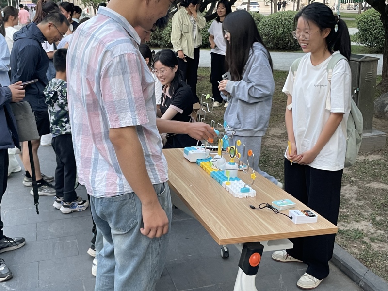 活动采用通关打卡+心智成长的模式,将心理健康教育转化为趣味体验。现场设置三大主题区域:知识探索包含“智启未来”汉诺塔挑战、“光影谜语”猜灯谜心理知识趣味套圈;情绪释放区设有“甩掉焦虑”乒乓球、火线冲击稳力挑战以爱为靶同心互镖;艺术疗愈坊包括oh卡牌叙事工坊、五彩黏土创意工坊等特色项目。参与者通过完成游戏收集心灵勋章,集齐勋章则可兑换幸运大转盘惊喜奖励。2024级化学专业田雨晴同学在体验后表示,这种将心理知识融入游戏的设计很吸引人,通过肢体动作甩掉乒乓球释放焦虑,在堆叠汉诺塔时重建思维秩序,这些身心协同的游戏让我感受到了幸福和放松
