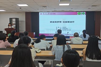 随后,三位优秀校友分别从科研经历与经验、科研工具利用、研究生阶段课题内容、如何在研究生阶段选择导师等方面进行了分享。他们鼓励大家在本科阶段积极联系导师,尽早进入实验室学习;有清晰的自我认知,做好短期与长期规划;努力使自己“动”起来,积极与老师沟通交流;也要积极进行体育锻炼,培养一项喜爱的运动,保持身体健康和心理健康。在互动问答环节,各年级同学把握机会,积极请教,围绕本科阶段暑期安排、如何处理实验数据推动科研进步、如何有效跟随师兄师姐锻炼科研技能等问题向三位优秀校友提问交流,学长学姐都倾囊相授,细致解答,现场互动频频,掌声此起彼伏。