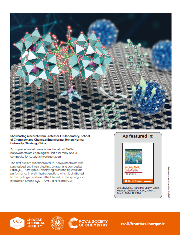 代表论文: 28. Yalei Zhang, Xiaofang Su*, Tao Zheng, Waqas Ali Shah, Likai Yan* and Shujun Li,* Flexible Intervention of Polyoxometalate Support on the Electronegativity of Single Atoms to Enhance Catalytic Activity, Inorg. Chem., 2025, 64, 3824−3830. 1. 27. Shujun Li,* Meng-Yao Huang, Weiyi Cheng, Waqas Ali Shah, Xu-Sheng Dai, Nana Ma,* QianyiZhao* and Xuenian Chen* An unprecedented oxalate-functionalized Ta/W polyoxometalate enabling the self-assembly of 2D composite for catalytic hydrogenation, Inorg. Chem. Front., 2024, 11, 7324. (Best Cover 2024) 2. 26. Yupeng Zhao, Zhengfan Chen, Nana Ma, Weiyi Cheng, Dong Zhang, Kecheng Cao,Fan Feng, Dandan Gao, Rongji Liu,* Shujun Li,* and Carsten Streb,* Atomically Engineered Defect-Rich Palladium Metallene for High-Performance Alkaline Oxygen Reduction Electrocatalysis, Adv. Sci., 2024, 2405187. 3. 25. Jun Miao, Xiaofeng Fan, Yining Shao, Yalei Zhang, Cailing Chen, Hongrui Tian, Shujun Li*, Zhiping Zheng*, Xiaoqian Xu*, Wheel-shaped polyoxometalates as nanozymes for autophagyaugmentedand phototherapy-involved cancer nanotherapy, Journal of Pharmaceutical Analysis, 2024, 101018. 4. 24. Waqas Ali Shah, Syed Mustansar Abbas, Muhammad Adil, Shaista Ibrahim,Qaisar Abbas Bhatti, Shujun Li,* Catalytic efficiency and kinetic analysis of manganese Polyoxometalate Heterogenized in MIL-100-Fe for selective Olefin oxidation using H2O2, Molecular Catalysis, 2024, 567, 114456. 23. Shujun Li*, Yubin Ma, Yue Zhao, Rongji Liu, Yupeng Zhao, Xusheng Dai, Nana Ma, Carsten Streb,* and Xuenian Chen*, Hydrogenation Catalysis by Hydrogen Spillover on Platinum-Functionalized Heterogeneous Boronic Acid-Polyoxometalates, Angew. Chem. Int. Ed. 2023, e202314999. (Hot Paper) 22. Shujun Li*, Na Li, Gang Li, Yubin Ma, Mengyao Huang, Qingchun Xia, Qianyi Zhao*, Xuenian Chen*, Silver-modified polyniobotungstate for the visible light-induced simultaneous cleavage of C–C and C–N bonds, Polyoxometalates, 2023, 2(2): 9140024. 1. 21. Nana Ma*, Yajing Bian, Weiyi Cheng, Yameng Li, Qingjin Wang, Shujun Li*, A theoretical exploration of the second-order NLO properties of linked sandwich double-layered metallacarboranes: charge transfer mediated by linker groups, Phys. Chem. Chem. Phys., 2023, 25, 22304. 2. 20. Nana Ma*, Lanxin Zhou, Yameng Li, Hao Wu, Shujun Li*, Guisheng Zhang*, Theoretical Insight into the Mechanism of Cu(I)-Catalyzed [2 + 2 + 1] Cycloaddition to β‑Pyrrolinones: Azaheterocycle Formation and Assisted Dehydrogenation with Solvent MeNO2, J. Org. Chem., 2023, 88, 10670. 19. YubinMa#, FanGao#, Wanru Xiao, Na Li, Shujun Li*, Bing Yu*, and Xuenian Chen*, Two transition-metal-modified Nb/W mixed-addendum polyoxometalates for visible-light-mediated aerobic benzylic C–H oxidations, Chin. Chem. Lett., 2022, 33, 4395-4399. 18. FanGao#, Wanru Xiao#, Shujun Li*, and Bing Yu*, Polyniobotungstate-Based Hybrid for Visible-Light-Induced Phosphorylation of N-Aryl-Tetrahydroisoquinoline, ACS Appl. Mater. Interfaces 2022, 14, 19278–19284. 4. 17. Wanru Xiao, Shujun Li,* Yue Zhao, Yubin Ma, Na Li, Jie Zhang and Xuenian Chen* Multinuclear transition metal-containing polyoxometalates constructed from Nb/W mixed-addendum precursor: synthesis, structures and catalytic performance, Dalton Trans., 2021, 50, 8690-8695. 16. Shujun Li*, Yue Zhao, Sebastian Knoll, Rongji Liu, Gang Li, Qingpo Peng, Pengtao Qiu, Danfeng He, Carsten Streb*, and Xuenian Chen*, High Proton-Conductivity in Covalently Linked Polyoxometalate-Organoboronic Acid-Polymers, Angew. Chem. Int. Ed. 2021, 60, 16953–16957. 15. Shujun Li, Yanfang Zhou, Nana Ma, Jie Zhang, Zhiping Zheng*, Carsten Streb*, and Xuenian Chen*, Organoboron-Functionalization Enables the Hierarchical Assembly of Giant Polyoxometalate Nanocapsules, Angew. Chem. Int. Ed. 2020, 59, 8537–8540. ·VIP (Very Important Paper) · Front cover · 被Chemistryviews做亮点介绍 1. 14. Shujun Li, Panpan Ji, Shangning Han,* Zhaomin Hao and Xuenian Chen*, Two polyoxoniobates-based ionic crystals as Lewis base catalysts for cyanosilylation, Inorg. Chem. Comm., 2020, 111, 107666. 13. Shujun Li, Gang Li, Panpan Ji, Jiangwei Zhang,* Shuxia Liu, Jie Zhang and Xuenian Chen*, A Giant Mo/Ta/W Ternary Mixed-Addenda Polyoxometalate with Efficient Photocatalytic Activity for Primary Amines Coupling, ACS Appl. Mater. Interfaces, 2019, 11, 43287−43293. 12. Shujun Li, Yue Zhao, Huihui Qi, Yanfang Zhou, Shuxia Liu, Xiaoming Ma, Jie Zhang* and Xuenian Chen*, Boronic acid derivatized lanthanide–polyoxometalates with novel B–OH–Ln and B–O–Nb bridges, Chem. Commun., 2019, 55, 2525–2528. 1. 11. Shujun Li, Yanfang Zhou, Qingpo Peng, Ruoya Wang, Xiaoge Feng, Shuxia Liu,* Xiaoming Ma, Nana Ma, Jie Zhang, Yi Chang, Zhiping Zheng* and Xuenian Chen*, Controllable Synthesis and Catalytic Performance of Nanocrystals of Rare-Earth-Polyoxometalates, Inorg. Chem., 2018, 57, 6624–6631. 2. 10. Nana Ma, Changgeng Wei, Shujun Li* and Guisheng Zhang*, Theoretical insight on ethylene polymerization catalyzed by carborane-containing metal complexes: the role of carborane, Dalton Trans., 2018, 47, 14421–14425. 1. 9. QingpoPeng, Shujun Li,*Ruoya Wang, Shuxia Liu, LinhuaXie, JianxinZhai, Jie Zhang, Qianyi Zhao and Xuenian Chen,* Lanthanide derivatives of Ta/W mixed-addendum POMs as proton-conducting materials, Dalton Trans., 2017, 46, 4157–4160. 2. 8. Shujun Li, Qingpo Peng, Xuenian Chen*, Ruoya Wang, Jianxin Zhai, Weihua Hu, Fengji Ma*, Jie Zhang* and Shuxia Liu, A Ta/W mixed addenda heteropolyacid with excellent acid catalytic activity and proton-conducting property, J. Solid State Chem., 2016, 243, 1–7. 3. 7. Fengji Ma,* Baiqing Yuan, Mengrou Li, Shujun Li,* Shuang-Shuang Zhang and Leilei Liu*, An Organic-Inorganic Hybrid Based on Keggin-Type Polyoxometalate andHypoxanthine: Synthesis, Structure, Stability, and Electrochemistry Properties, Z. Anorg. Allg. Chem., 2016, 17, 925–929. 4. 6. Shujun Li, Fanyu Zhang, Qingpo Peng, Xuenian Chen*, Ruoya Wang, Zhifang Wang, F