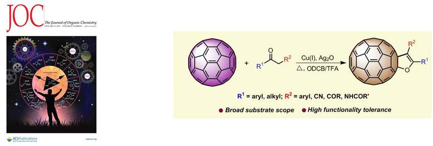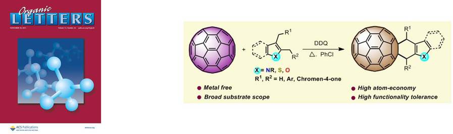 10. Shilu Xia, Tong-Xin Liu,* Pengling Zhang, Jinliang Ma, Qingfeng Liu, Nana Ma, Zhiguo Zhang, Guisheng Zhang* Broad Synthesis of Disubstituted Dihydrofuran-Fused [60]Fullerene Derivatives via Cu(I)/Ag(I)-Mediated Synergistic Annulation Reaction J. Org. Chem., 2018, 83, 862−870. • Highlighted by Synfacts, 2018, 14, 0369.