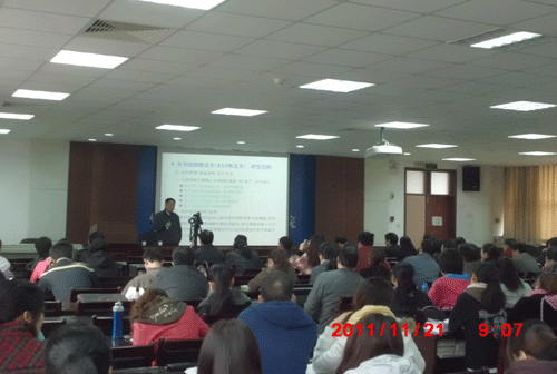 段连运教授首先向全院师生做了《二十一世纪的化学与化学教育》的报告,高屋建瓴地总结了21世纪化学的内涵、定义与五大发展趋势,并指出21世纪化学的四大难题并对各大难题的研究内容进行分解讨论,提出了21世纪化学研究的10大突破口。在以《增强研究意识 深化教学改革》为主题的报告中,段教授从我国高等化学教育教学的改革与发展谈起,结合本科生培养模式、课程体系改革、实验教学、本科生科研训练等多个方面,提出了对当前化学教育教学中几个问题的思考,并鼓励大家搞好教学、潜心科研,以高水平的科研带动高质量的教学,以高质量的教学促进高水平的科研。随后,段连运教授还耐心解答了学院教师关心的新的化学学科指导意见、两课问题、人才模式改革、理论及实验课教学等问题。