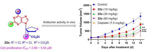 24. Er-Jun Hao,*Yan Zhao, Min Yu, Xian-Jia Li, Ke-Xin Wang, Fu-Ying Su, Yu-Ru Liang,* Yang Wang,* Hai-Ming Guo*,Discovery, Synthesis and Activity Evaluation of Novel Five-membered Sulfur-containing Heterocyclic Nucleosides as Potential Anticancer Agents in Vitro and in Vivo, J. Med. Chem. 2024, 67, 12553-12570.(国际药学领域顶尖期刊, Highlight by ACS、CBG、cDRUGS和X-MOL)