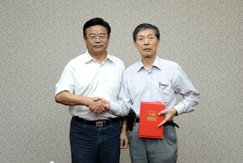 焦校长对陈立泉院士一行的到来表示热烈欢迎,对陈院士长期以来对我校学科建设和科技创新工作的悉心指导和大力支持表示了感谢。陈立泉院士简要回顾了多年来与我校的学术缘分,特别是与工程中心主任杨书廷教授的师生情缘,并表示今后将一如既往地关心和支持师大的发展。欢迎会上,焦校长向陈立泉院士颁发了河南省动力电源及关键材料工程技术研究中心技术委员会主任聘书。