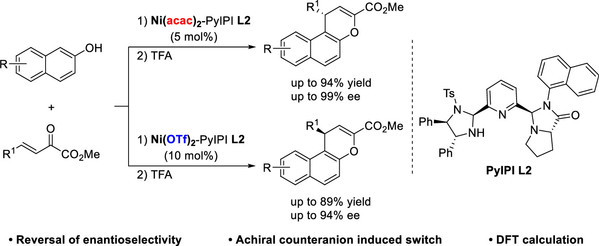 [21] Chen-Ying Hou, Chun Yang, Yin Tian*, Ming-Sheng Xie*Hai-Ming Guo*Achiral Counteranion-Induced Reversal of Enantioselectivity in Ni(II)-Catalyzed Friedel–Crafts Alkylation/Annulation of 2-NaphtholsOrg. Lett., 2024, 26, 30, 6390-6395.