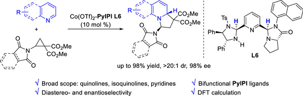 [22] Xing-Yu Wang, Xiao-Bing Wang, Yin Tian*, Cheng Peng, Ming-Sheng Xie*Hai-Ming Guo*, Cobalt-Catalyzed Asymmetric Dearomative [3 + 2] Annulation of Quinolines, Isoquinolines, and PyridinesACS Catal. 2023, 13, 17, 11528-11540.