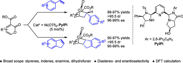 [23] Heng-Bin Yu, Yang-Guang Chen, Yin Tian*, Ming-Sheng Xie*Hai-Ming Guo*Nickel(II)-Catalyzed Asymmetric Inverse-Electron-Demand Diels–Alder Reaction of 2-Pyrones with Styrenes and IndenesACS Catalysis, 2024, 14, 11, 8930-8938.