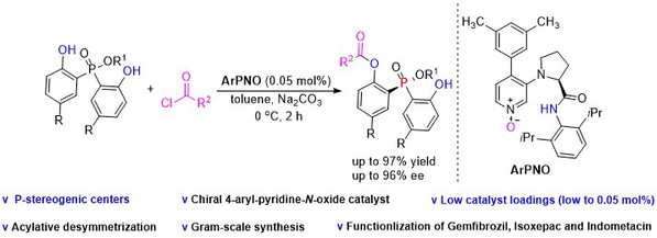 [12] Yang-Guang Chen, Ying Hu, Jia-Yi Liu, Ming-Sheng Xie*, Hai-Ming Guo*, Pyridine-N-oxide catalyzed acylative desymmetrization of bisphenols: access to P-stereogenic phosphinates with low catalyst loadings, Org. Chem. Front., 2023, 10, 6140-6145.