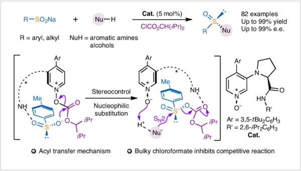[29] Cui-Mei Guo , Fang-Yuan Zhang, Yin Tian,* Ming-Sheng Xie,* and Hai-Ming Guo* Pyridine-N-oxide Catalyzed Asymmetric N-Acylative Desymmetrization of Sulfonimidamides, Chem. Sci.2025, 16, 8812.