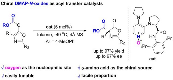 [8] Meng Shan, Tao Liang, Ye-Fei Zhang, Ming-Sheng Xie,* Gui-Rong Qu, and Hai-Ming Guo* Enantioselective rearrangement of indolyl carbonates catalyzed by chiral DMAP-N-oxides, Org. Chem. Front. 2019, 6(23), 3874-3878.