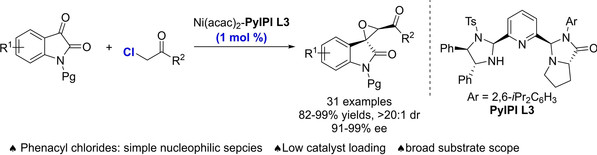 [17] Han-Le Wang, Tao Wei, Ru-Yun Bi, Ming-Sheng Xie*, Hai-Ming Guo*, Imidazolidine-Pyrroloimidazolone Pyridine-Ni(acac)2 Complex Catalyzed Asymmetric Darzens Reaction of Isatins with Phenacyl Chlorides: A Chiral Amplification Effect, Adv. Synth. Catal., 2024, 366, 14, 3188-3193.