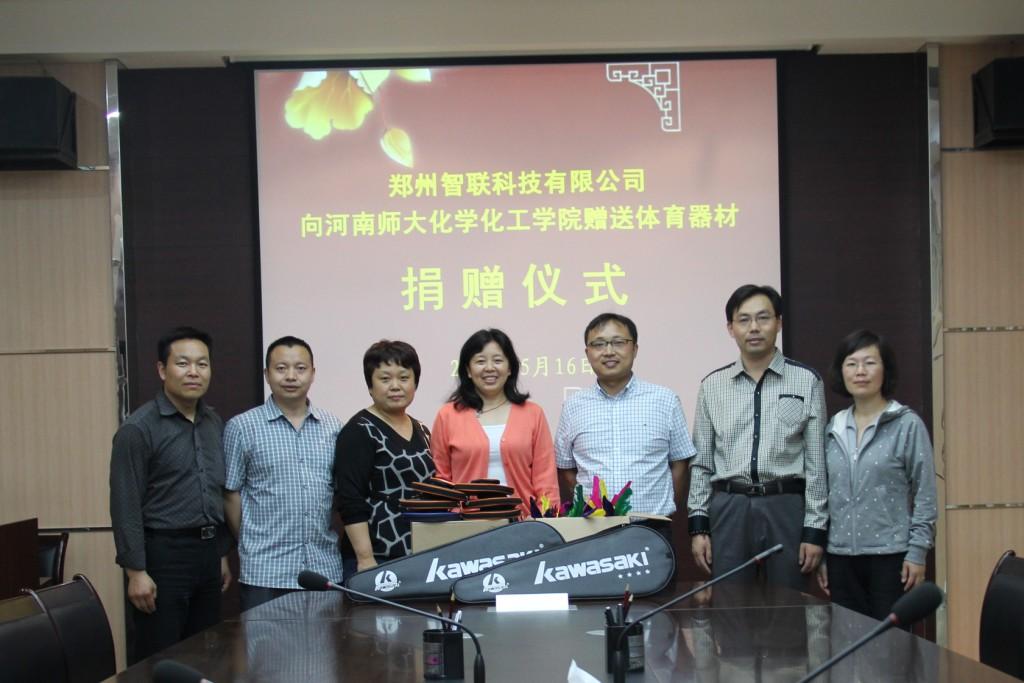 为丰富广大教职工文化体育生活、锻炼教职工强健的体魄、培养大家良好的团队合作精神,我院分工会本着大众化、趣味化的原则,在广泛征求教职工意见的基础上,经考察论证,主动与郑州智联科技有限公司取得联系,请该公司向全院捐赠了一批体育训练器材(主要包括乒乓球拍、羽毛球拍、键球),并于516日下午330在化学北楼N114会议室举行了捐赠仪式。