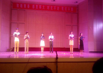 本场毕业晚会是视觉与听觉的盛宴,也是青春与别离的晚宴。开场舞《小苹果》以欢快的节奏和青春的舞步,震撼登场,掀起了晚会的第一个高潮。随后,魔术表演、歌曲串烧、集体舞等表演纷纷以校园生活为背景,带领大家回顾校园生活,表达对大学生活的不舍与珍惜。此外,2011级兼职辅导员朱会宇和兼职辅导员闫崇带领同学表演的"师生T台秀",充分展现了师生的青春活力和彼此间的深厚感情。值得一提的是,由王毅书记等领导老师带来的师生朗诵,带领大家一起回顾了大学四年那段努力的青春和无悔的岁月,老师们一句“不管身在何方,母校永远是你的避风港,用宽广的胸膛、包容的思想,支持来自师大的热血儿郎”更是感动全场。最后,伴着毕业诗《最美的回忆》晚会落下帷幕。