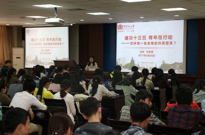 孙冬青以“做一名合格的共青团员”为题,从“什么是共青团,共青团能为青年做什么,共青团应如何改革和发展”三个问题为切入点,为同学们上了一堂精彩的团课。在团课中,孙冬青就中国共青团的发展史、基本任务、组织要求及改革方向等方面进行了详尽阐述,并从坚定理想信念、练就过硬本领、勇于创新创造、矢志艰苦奋斗、锤炼高尚品格等五个层面和生动形象的事例强调了做一名合格共青团员的重要意义,引发广大团员积极思考和思想共鸣。最后她勉励同学们,要坚定实现伟大中国梦的信心,勇于承担起中国未来的重担,为实现中国梦作出积极贡献。