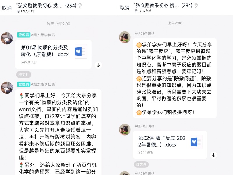 我院“弘文励教秉初心,携手逐梦共前行”云支教团面向教育资源薄弱地区的初高中生积极开展日常答疑解惑、分享学习资料、交流经验方法、同上一堂公开课等支教活动。