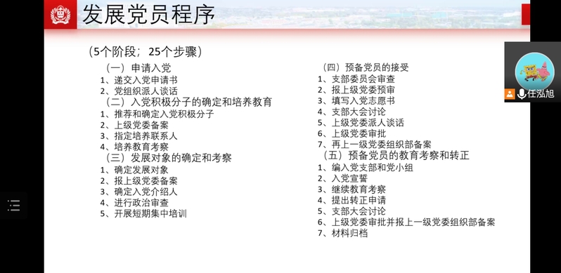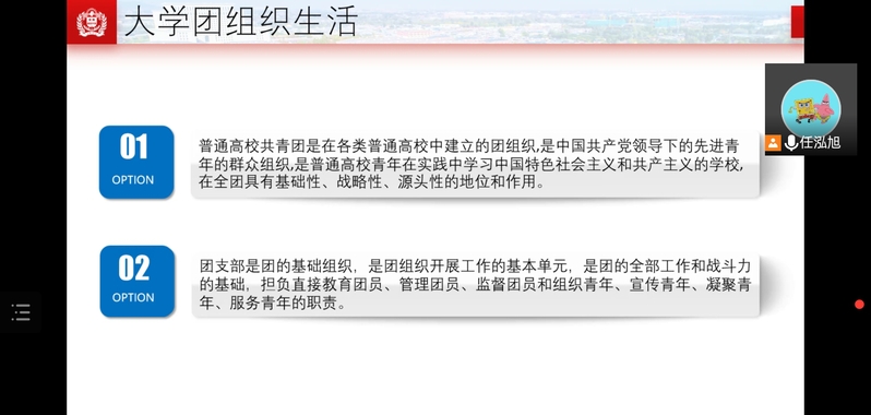 宣讲主要分为高校团的组织活动和发展党员程序两个方面。学院团委学生副书记任泓旭从团支部基本任务展开叙述,结合“三会两制一课”、主题团日活动、推优入党工作、评优评先等内容帮助学生了解大学团组织生活从中国共产党的性质、端正入党动机、入党条件和流程等多个角度分享了关于发展党员的相关事宜。同时,他动员大家要在今后的学习和生活中树立先锋模范作用、点亮团员身份、积极向党组织靠拢。学院团委书记曹锟就青年团员树立正确的理想信念、强化“双防”意识、明确马克思主义宗教观、坚定青年团员和共产党员的信仰等问题进行了强调和要求,希望新同学们要利用好开学前的这段时间,提前熟悉了解即将到来的大学生活,提早做好准备,尽快明确发展方向。