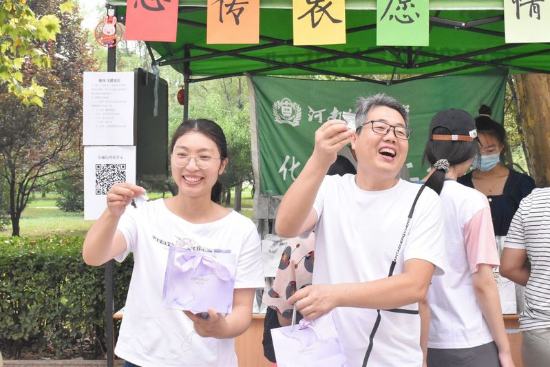 活动前期,卓越化师社通过官Q进行宣传,学院全体师生都热情地参与其中。活动当天,在负责人的引导下,老师们先在趣味飞镖活动中投掷飞镖,然后根据命中的环数,去完成对应环数的趣味小挑战,最后领取盲盒礼物,并通过文字形式表达了对学生的美好祝福以及未来期望。在活动期间,学院学子也积极地为老师书写祝福语句,一笔一划包含着对老师们谆谆教诲的无限感激。其中,线上活动也在同时进行,同学们积极参加“分享和教师的小故事”抽奖活动,活动趣味性得以增强。