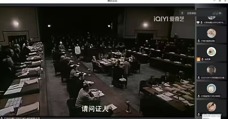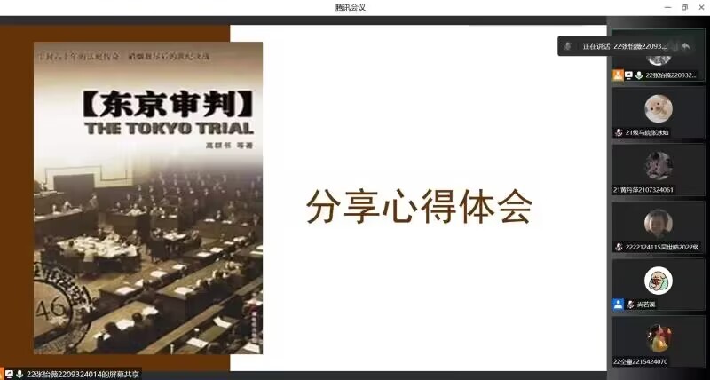 活动伊始,主持人宣读开场词,陈述此次团日活动内容及活动主题,并向大家介绍《东京审判》这部电影的历史背景。随后,主持人开始播放《东京审判》,组织同学们观影。在此过程中,社员们认真观看电影,深入了解东京审判这一事件,从而在铭记历史和缅怀先烈的思考中坚定理想,在珍爱和平和开创未来的行动中接力奋斗,在实现中国梦的生动实践中放飞青春梦想。电影观看完毕,主持人邀请同学分享此电影的观后感,其中2021级本科生马张冰灿发表感悟,看完电影之后心情久久不能平静,除了对日本战犯的冥顽不灵的愤怒之外,更多的是震撼,是对以梅汝璈为首的中国法官强烈的民族正义感和爱国热忱所深深的折服。最后,主持人对本次活动进行总结发言,指出只有人人都珍惜和平、维护和平,吸取战争的惨痛教训,和平才是有希望的。