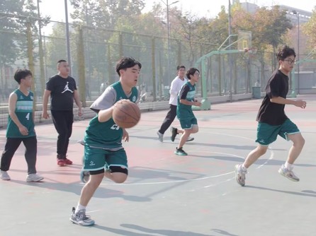 比赛开始前,邢凯和队员们进行了亲切交流,充分了解了每个队员的想法和所长,将队员们分成了势均力敌的两组,并组织队员集中在操场中间,相互握手、击掌,营造“友谊第一,比赛第二”的融洽氛围;随后,裁判一声哨响,双方队员迅速进入比赛状态,个个积极投入、全力以赴;队员们巧妙的传球、默契的配合、精准的投篮和奋勇的突破,赢得了观众的阵阵喝彩;一幕幕扣人心弦的角逐在篮球场上不停上演,队员们的一举一动都牵动着观众的心。