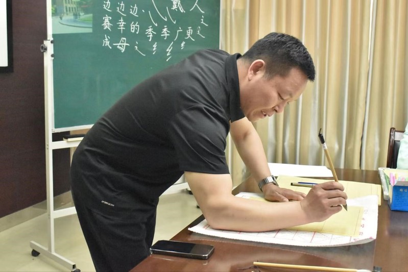 会议伊始,党治国老师结合往年评选学校三笔字大赛的经验,概况总结了同学们在粉笔字、毛笔字、钢笔字书写中存在且频繁出现的错误点。他强调字的整体面貌离不开笔画及结构,写好字就要熟练掌握字的笔画及结构。接着,他提笔示范,在书写的过程中他向同学们一一分析书写规则及技巧。互动中,他观看并指导学生书写,对同学们的疑惑给予了详细地解答。同学们纷纷表示从党老师深厚的书法功底和耐心地指导中获益良多。最后,党治国表示:扎实的书法功底离不开坚持不懈的努力,书法不是一蹴而就的,希望同学们能够持之以恒地练习。呼吁同学们写好规范字,将中华汉字文化发扬光大,并祝愿大家可以在“三笔字”大赛中取得优异成绩。