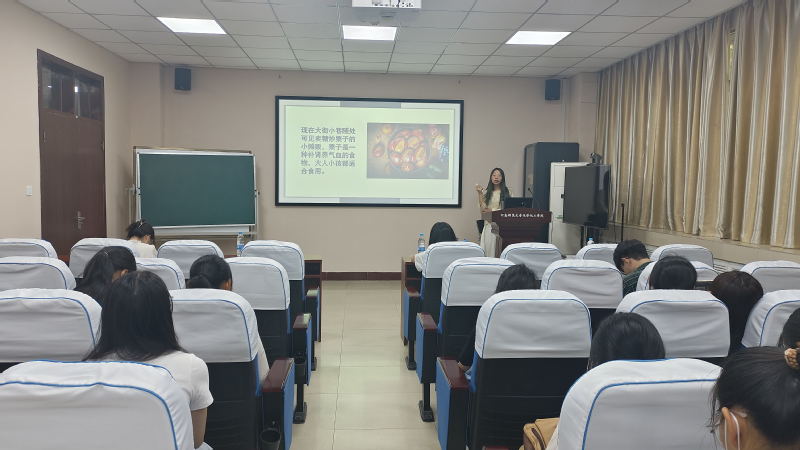 比赛伊始,主持人详细介绍了比赛规则,强调比赛注意事项。随后,进入决赛的20位参赛选手按照赛前抽签顺序依次对化学科普课件的制作思想及相关内容进行了激情澎湃的讲解。选手们科普的内容异彩纷呈,小到糖炒栗子、油条制作、淀粉肠成分等与人们息息相关的生活常识,大到家居环境、美容护肤、医药健康及绿色化学等前沿性科学知识,生动有趣地科普了生活中所蕴含的化学原理。比赛期间,兼职辅导员王楠根据课件的科学性、教育性、技术性和艺术性对选手们进行了细致点评,指出要提高语言表达技巧,巧妙利用肢体语言,积极以图片或动画作为辅助工具,达到图文并茂的效果。