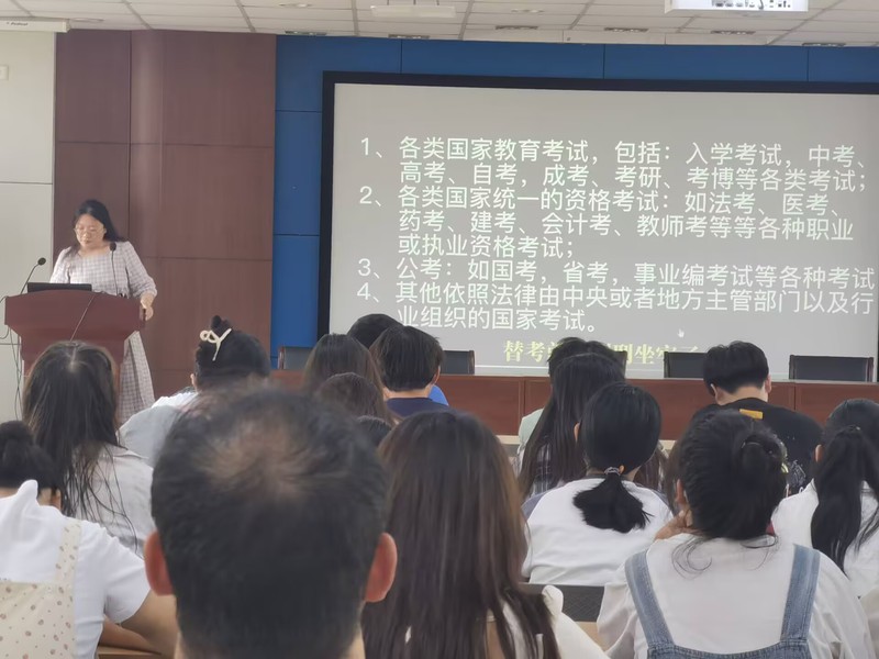 会议伊始,为强化考试纪律,全体同学共同观看了高考作弊相关的法律教育视频,在高考即将来临之际提醒大家强化法律意识,切勿触碰法律的红线,诚信考试从你我做起。其次,学院团委书记、2022级辅导员曹锟详细讲解了假期期间的安全注意事项,包括出行安全、网络安全、饮食卫生以及突发事件的应对策略,要求学生干部们发挥模范带头作用,确保每位同学都能遵守安全规定,享受一个平安的假期。接着,他指出进入期末复习月,同学们要扎实复习,同时为考级考证做好充足准备。最后,曹锟总结了会议要点,鼓励同学们在大二学年明确自身定位,规划好自己的大学生涯。