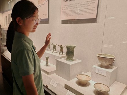 团队成员走进河南博物院,参观了“泱泱华夏,择中建都”、“出彩中原—河南红色文化陈列”、“明清河南”等多个展厅。大家认真阅读展厅的前言介绍,仔细聆听志愿者对每一件文物的讲解,在铿锵有力的文字和语言间感受中原文化带给后代的精神震撼和文化感染力。随后,团队成员怀揣着崇高的敬意依次参观了河南博物院的镇馆之宝“妇好鸮尊”、“云纹铜禁”、“贾湖骨笛”、“莲鹤方壶”等历史文物,以及诸多令人叹为观止的中原藏品文物。在参观的过程中,团队成员穿越历史的长河,用心感受陈列在展台的文物所散发出的文化魅力,认真聆听它们在时代的洪流中发出的千年回响。郑佳文同学表示,本次实践活动,不仅是一次人与物之间实际的接触,更是一场心灵的触动、灵魂的交流。