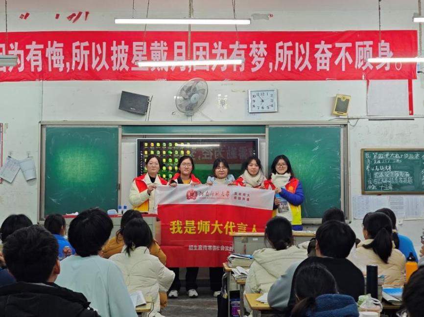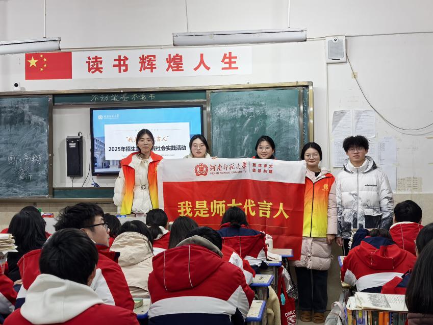 为进一步发挥社会实践的育人功能,增强学生爱校荣校意识,广泛宣传我校办学成就和办学特色,吸纳更多优质生源报考我校,寒假期间,我院6支“我是师大代言人”实践团队在省内各优质生源高中开展招生宣讲活动。