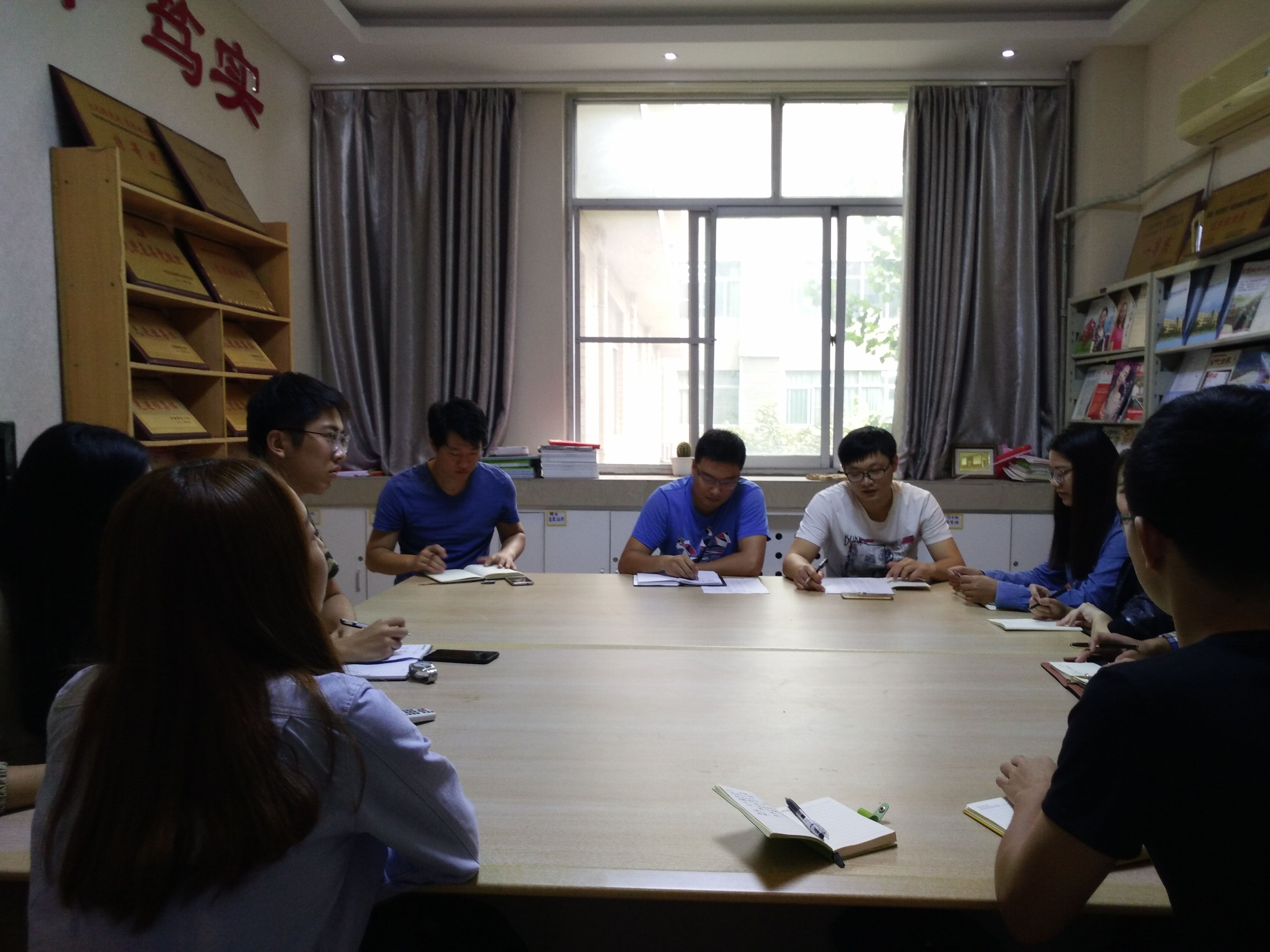 9月2日上午,化学化工学院在化学北楼N223召开新学期团务工作务虚会。会议由院团委书记卢鑫主持,2015级辅导员曹锟、2017兼职辅导员池彦伟及团委学生会骨干参加会议。