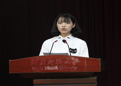 省教学标兵、我校第二届“十大育人楷模”刘玉荣老师发言,她代表全体教师向新同学寄予了美好的祝愿,并勉励他们要学会学习、学会实践、学会合作和学会做人。在校生代表、中国科学院过程工程研究所推免生郭帅分享了自身成长的经历和心得。2017级本科生代表赵梦爽、研究生代表张泽分别发言,表达了对学院领导老师的感恩和对大学生活的期待,并表明了奋发向上的决心。