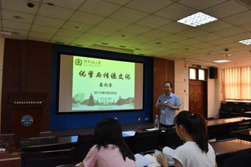 为充分展示化学之美,让广大师生了解化学、热爱化学、关注化学。5月26日上午,我院在化学北楼五楼会议室举办“化学与传统文化”专题讲座,邀请娄向东教授担任主讲,共120余名全校学生到场聆听。 娄老师以四大发明为例引出主题,从化学与古代科学文献、中国文字、古诗词三个方面展开细致讲解。他从狭义和广义两个方面解释文化的内涵,并借助古诗词和古文献中蕴含的化学知识,向同学们解释其中的化学变化,生动地展示出化学的魅力。在场同学纷纷表示,感受到传统文化与化学之间奇妙的联系。最后,娄老师指出,作为新时代青年大学生,我们要响应时代号召,努力增强文化自信,提升化学人的社会责任感,为实现伟大的中国梦而不懈奋斗。 本次专题讲座作为“魅力化学”科技文化节的一项主要内容,旨在向全校师生普及化学知识,激发同学们对化学的浓厚兴趣,展现化学悠久的历史,让广大同学更加了解化学,感受化学独特的学科魅力。 (化学化工学院 汪子雨 刘茜璇) |