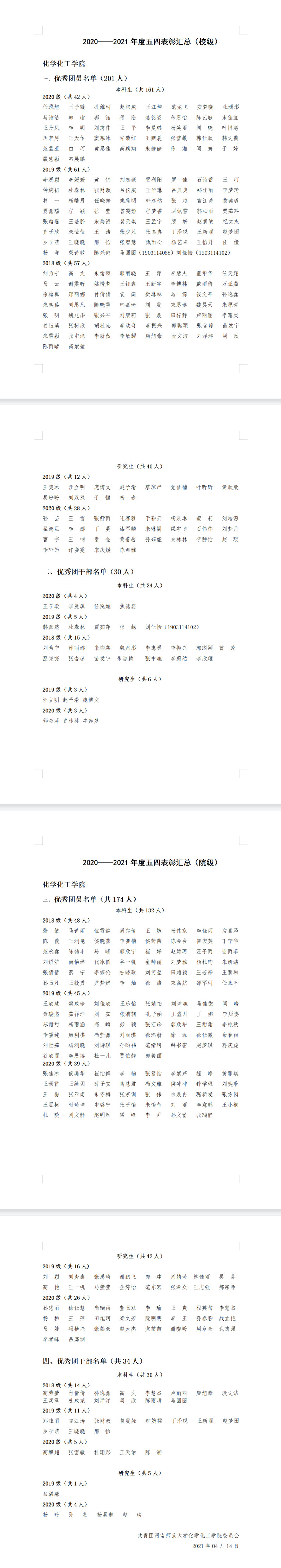 化学化工学院2020——2021年度 先进个人和先进基层组织暨五四表彰公示