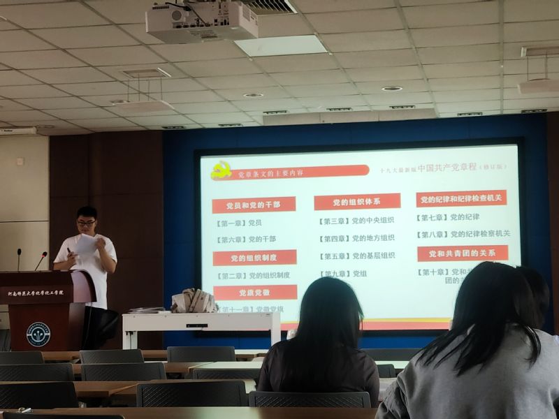 为深入贯彻落实党的十九大精神和习近平新时代中国特色社会主义思想,切实提升党员发展质量,加强对入党积极分子的培养教育,4月24日,我院本科生第一党支部在化学北楼五楼会议室开展主题党课,支部学生党员、本学期确定的入党积极分子参加。 党课由支部党员任泓旭主讲,他结合自己学习党章的心得体会,做了题为《认真学习党章·严格遵守党章》的报告,他结合党的发展历程、从党章的概述、总纲、条文以及党的十九大对党章的贡献和学习要求等方面对《中国共产党章程》进行解读。他强调,党员、入党积极分子要牢固树立党章意识,要时刻牢记党的性质、宗旨和指导思想,坚持以优秀共产党员的标准严格要求自己,自觉为人民服务,努力通过自己在政治上、思想上、行动上的优秀表现早日加入共产党。随后,任泓旭同学向支部内本学期新确定的入党积极分子介绍了发展党员程序并带领大家整理完善入党积极分子材料,集中填写《入党积极分子培养考察登记表》、《发展党员全程纪实表》。 此次党课以学习党章为主,党课的开展大幅度提高了入党积极分子的思想认识,对入党积极分子的培养起到了积极作用,党支部今后将持续开展入党积极分子培训工作,将党史学习教育、党章教育深入入党积极分子群体。 (化学化工学院 任泓旭) |