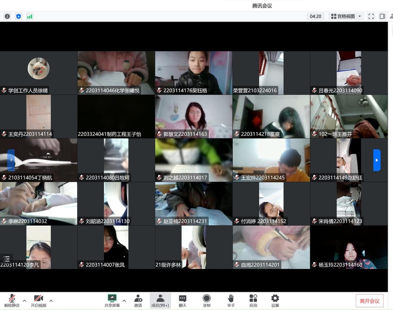 开学考试将近,为帮助学生巩固专业知识,不断提升学习自觉性和自我管理能力,2月7日至12日,我院于腾讯会议线上平台举办“云上自习室”活动,2020级、2021级、2022级本科生参与其中。