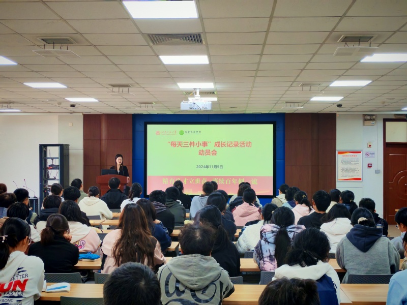 为激发学生自我反思与成长的动力,更全面地关注学生的综合发展,11月5日下午,我院2024级本科生在化学北楼五楼会议室开展“每天三件小事”成长记录活动动员会。2024级专兼职辅导员、全体本科生参与此次会议。 会议伊始,罗睿睿首先明确开展本次活动的目的,强调通过记录“每天三件小事”,获得亲身感悟并以此来激励反思自己,挑战心理上的懒惰,提高执行力和自信心。接着,她围绕“积小成大、积少成多”的发展主题,从活动简介、活动目标和活动方式三方面详细为大家讲解了相关活动内容。最后,结合本次活动主题,罗睿睿对学生提出三点希望:一是要保持积极向上的心态,可以写下按时作息、跑步公里数、欣赏美食等日常生活和心情的记录;二是要练就专业的知识本领,例如明确相关实验的开展、课程的学习、单词量的积累等等;三是要成为综合全面型人才,将长远规划分解为每天的小目标,实现德智体美劳全面发展。 此次“每天三件小事”成长记录活动,不仅为学生提供了一个展示自我、记录成长的平台,而且能够帮助学生回顾自身成长历程,增强自我规划能力。学院将会持续推动活动的实施开展,定期组织“每天三件小事”分享会,切实为学生成长成才打下坚实基础。 (化学化工学院 罗睿睿 李佳忆) |